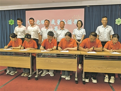 “我承诺,坚守服务初心,践行职业操守;提升专业技能,保障服务质量;严格服务标准,规范服务流程;注重沟通关怀,满足多元需求;强化安全意识,确保服务安全;保持廉洁自律,维护行业形象。”大家以铿锵誓言,表达了矢志提高服务质量、造福入住长者的信心。