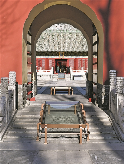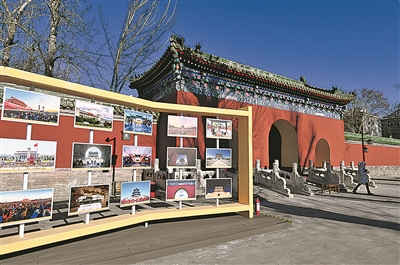 庆成宫一进院内的“北京中轴线申遗保护工作成果展”。
