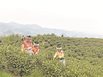 4月2日,观山湖区朱昌镇高寨村村民在神鹊茶场采茶(本报资料图片)。