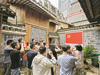 党员在八路军贵阳交通站旧址重温入党誓词。