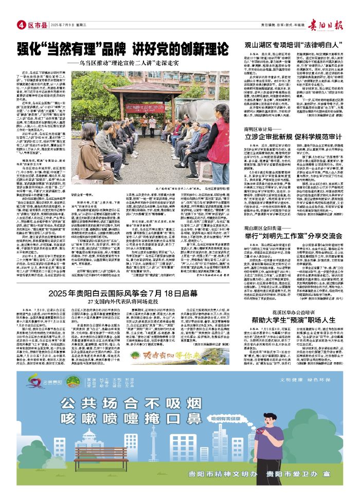 本报讯 连日来,观山湖区司法局在10个镇(街道)组织开展“法律明白人”专项培训活动,着力培养一批懂法律、善调解、能服务的基层法治骨干,夯实法治社会根基,提升基层依法治理能力。 此次培训