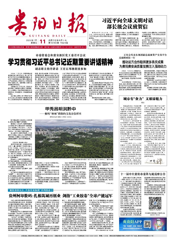 本报地址:贵阳市中山东路25号 邮编:550002 总编办电话:(0851)85829224 广告部电话:(0851)85813858 零售:1.50元 贵阳日报传媒集团有限公司承印