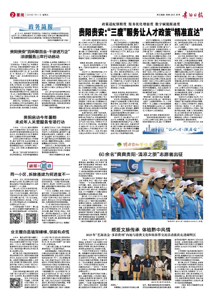 本报讯 7月10日,贵阳市暑期未成年人关爱保护项目“宝贝乐园”在云岩区黔灵东路街道陕西路社区举行启动仪式,标志着贵阳市2025年暑期未成年人关爱服务专项行动拉开帷幕。 该项目由贵阳市委