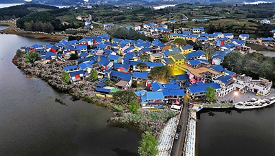 近年来,右二村凭借集中连片的湖畔蒙德里安色系建筑群走红网络,被网友赞为“贵州高原上的宫崎骏漫画世界”,著名的右二樱花园就坐落于此。2019年起,在当地政府的指导下,右二村成功吸引以王庆能为代表的创业群体,逐步发展起咖啡、民宿、露营等旅游业态。