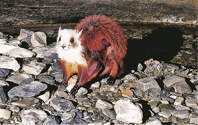 贵州双河洞内发现的活体生物飞猫(上图)。