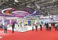 7月16日,以“链接世界、共创未来”为主题,由中国贸促会主办的第三届中国国际供应链促进博览会在北京开幕。这是链博会首次将举办时间提前至夏季。图为7月16日,观众在健康生活链展区参观。