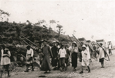 叶圣陶、与张家人游天平山(二十世纪三十年代)。