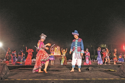 20点,“星火燃情·全民联欢”篝火晚会将活动推向最高潮。舞台上燃起熊熊篝火,演员唱响彝族民歌,现场观众在舞者的带领下,纷纷加入其中,或挥舞荧光棒,或手拉手围成一个大圆圈共同舞动。大家不分彼此,脸上洋溢着幸福的笑容,在火光的映照下,构成一幅民族团结的美好画卷。