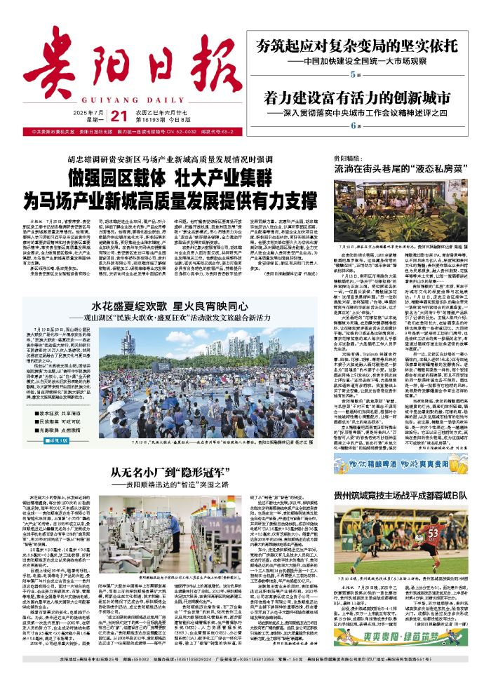 7月19日至20日,观山湖公园民族大联欢广场化作一片清凉欢乐的海洋,“民族大联欢·盛夏狂欢——我在贵州等你”活动盛大举行,两天共吸引市民游客约10万人次入场游玩,共同沉浸在这场融合了民族文化与