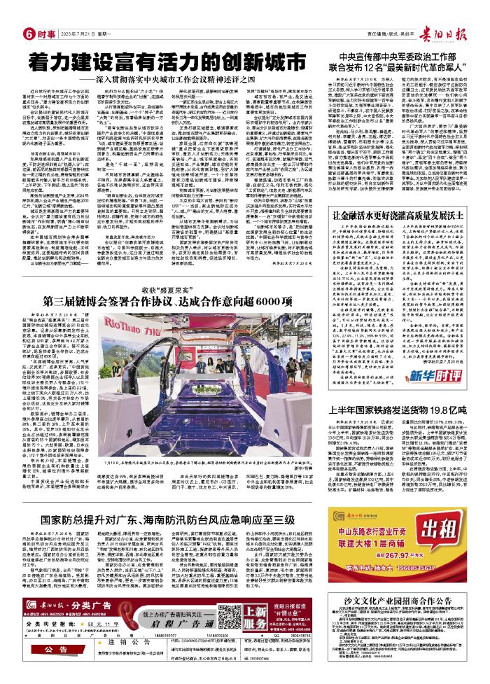 新华社北京7月20日电 记者20日从中国国家铁路集团有限公司获悉,今年上半年,国家铁路累计发送货物19.8亿吨,日均装车18.24万车,同比分别增长3.0%、4.0%。 国铁集团货运部