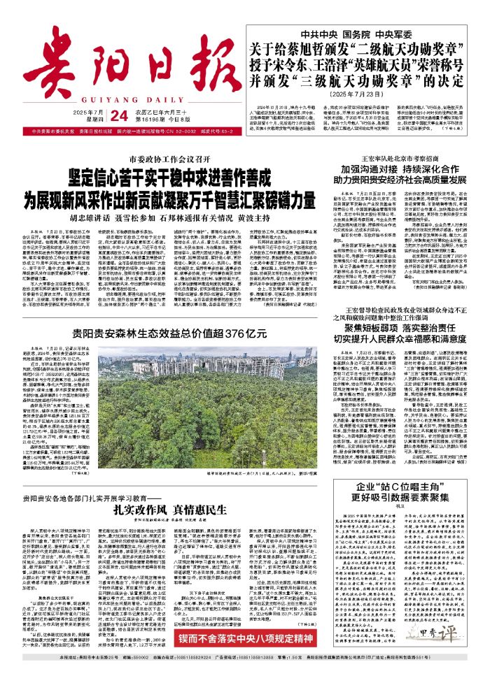 本报讯 7月23日,记者从市林业局获悉,2024年,贵阳贵安森林生态系统效益显著,总价值达376.18亿元。 近日,市林业局联合省林业科学研究院,依据《森林生态系统服务功能评估规范》(