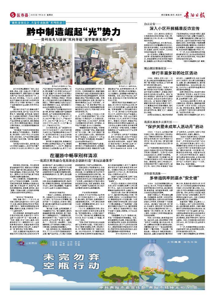 在中央空调全覆盖的厂房内,经过固晶、焊线、点胶、包装以及170摄氏度高温烘烤等环节,源源不断的LED健康光源产品下线出货,随即发往广州、上海、杭州、苏州等地。7月23日,记者走进位于清镇市的贵