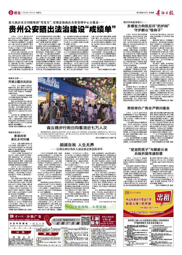 本报讯 7月24日,贵州省公安厅举行“阳光下的守护”主题新闻发布会,晒出近年法治公安建设“成绩单”:全省97个县级执法办案管理中心全部建成运行,重大执法安全问题保持“零发生”;273.8万条