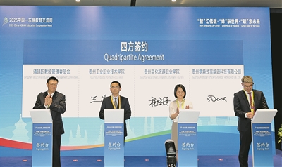 活动期间,清镇职教城管委会、贵州工业职业技术学院、贵州文化旅游职业学院、贵州氢能效率能源科技有限公司进行政校企四方签约;贵州工业职业技术学院与马来西亚青年英才学院、Asahi Thai Alloy Co., Ltd.签约,“中文+职业技能人才培养中心”揭牌。