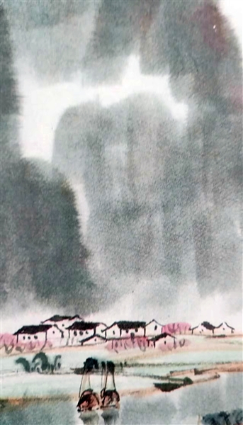 莫万德水彩画作品《春雨》。