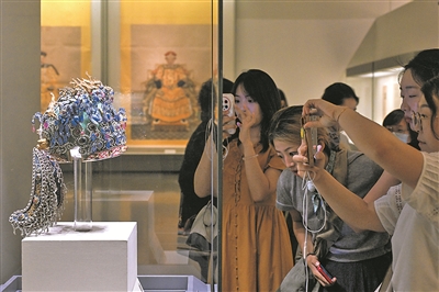 近日,“美之道”文化项目在北京中国国家博物馆举行首发式。据了解,该项目以32件馆藏文物为叙述载体,以中式美学在不同历史时期呈现出的鲜明时代特征为叙事脉络,架构一条虚实结合的“美之道”参观路径。图为人们在国博参观孝端皇后凤冠。 新华/传真