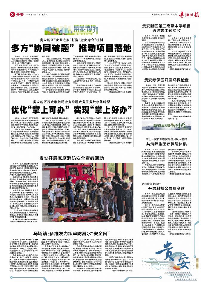 本报讯 7月25日,贵安新区第三高级中学项目通过竣工预验收。 该项目由贵安新区产业发展控股集团有限公司承建,从2024年12月开工至2025年7月竣工,用时211天。项目位于贵安新区数