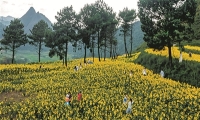 本报讯 眼下,花溪区青岩镇新关村500亩粮油示范田呈现出一片生机盎然的景象,特别是200亩金灿灿的向日葵正值盛花期,吸引众多市民前往观光打卡。 今年年初,花溪区农业农村局积极引导贵州溪