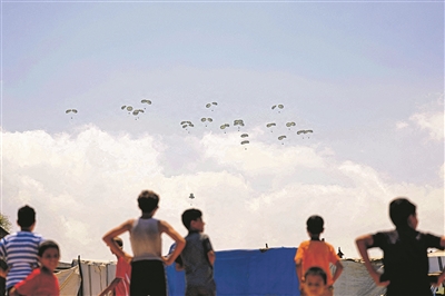 埃及军方3日也发表声明说,过去72小时,共出动9架军用运输机向加沙地带空投人道主义援助物资,数十吨粮食被空投到陆路难以抵达的区域。