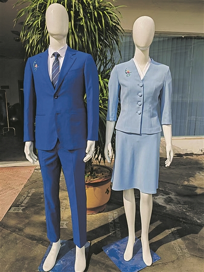 2025数博会志愿者服装设计结合“爽爽贵阳”城市品牌、贵阳市花兰花和苗绣文化等多种元素,旨在将数博会理念与地方特色、民族文化融合。其中,女款采用中式直门襟设计,颜色为天蓝色,色彩清新、明亮、广阔、活力,搭配中式小立领衬衫,端庄、大气,更具有东方韵味。男款采用经典西装版型,颜色为湛蓝色,色彩睿智、平和、开阔、沉稳,搭配纯白色方领衬衫,简约大气,给人以庄重的感觉,更符合数博会的国际气质。男女外套面料材质透气、轻薄,男女衬衣选用舒适的纤维材质,面料柔软垂顺。