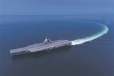 2024年5月7日,我国第一艘国产电磁弹射航空母舰福建舰在首航试验中(无人机照片)。 新华/传真