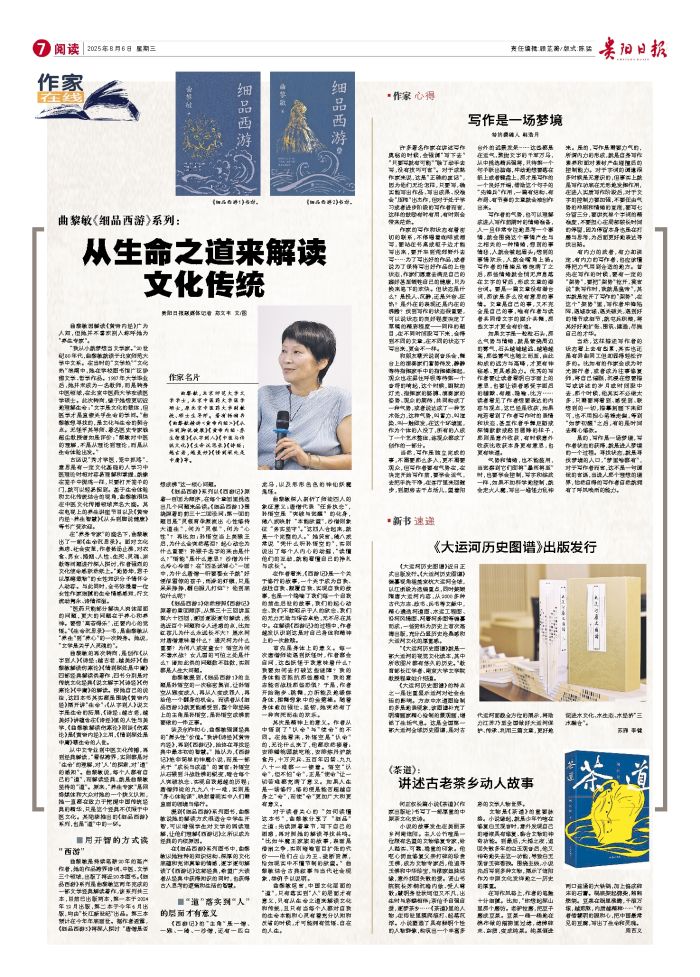 曲黎敏是持续笔耕20年的高产作者,她的作品跨界诗词、中医、文学三个领域,出版了将近20本图书。《细品西游》系列是曲黎敏这两年完成的一部文学经典解读著作,该系列共三本,目前已出版两本,第一本于2024年12月出版,第二本于今年6月出版,均由“长江新世纪”出品。第三本预计在今年年底面世。据作者透露,《细品西游3》将深入探讨 “唐僧是否想成佛”这一核心问题。