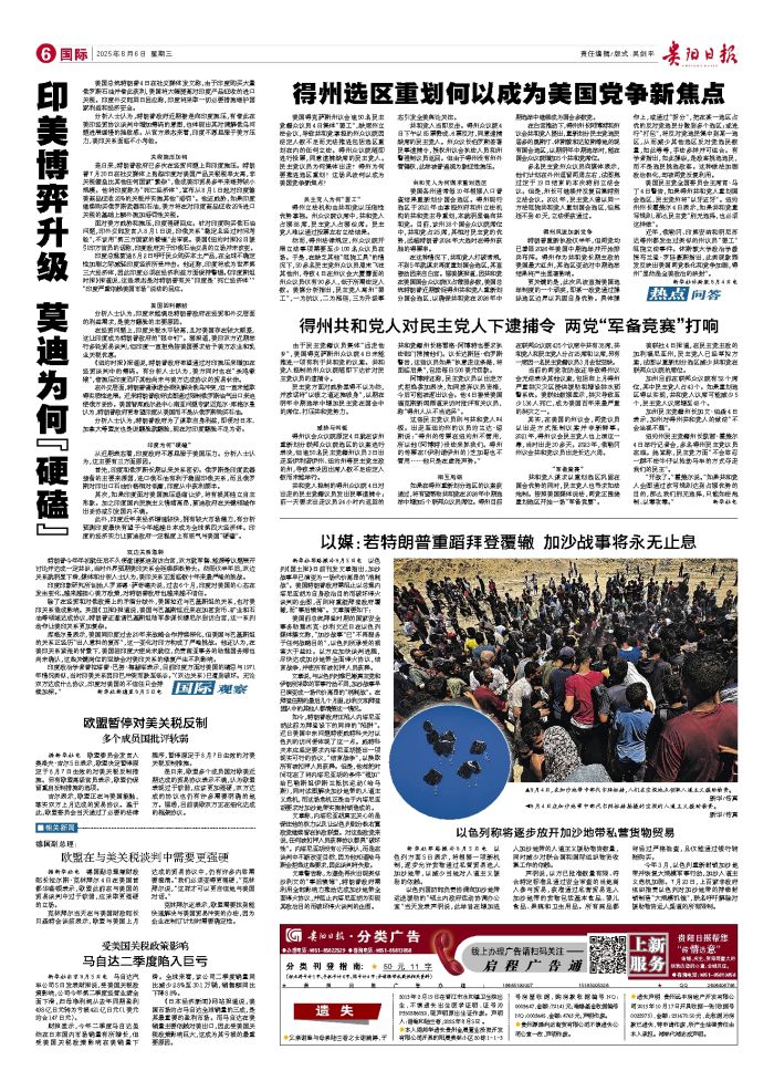 新华社耶路撒冷8月5日电 以色列《国土报》日前刊发文章指出,加沙战事早已演变为一场代价高昂的“消耗战”。美国特朗普政府需阻止以总理内塔尼亚胡为自身政治目的而破坏停火谈判的企图,否则将重蹈拜登