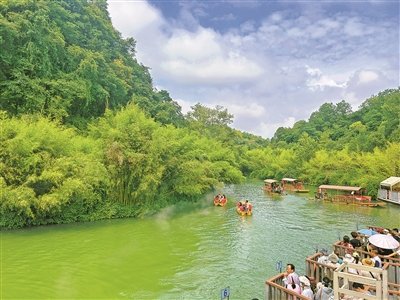 8月6日,记者在景区看到,游客服务中心、售票处、游船码头等地,游客有序排队;码头边,一艘艘游船载客穿行于碧波间。“景区集中展现了溶洞、瀑布等喀斯特地貌风景,且生态环境良好,是一座天然氧吧。”四川游客杨勇说。