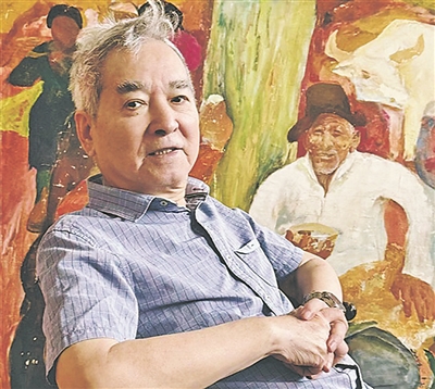 几天后,在一间不大的旧画室里,这位白发老者不畏天气炎热,坚持到画室工作,为的是修复两幅旧作。他就是今年82岁的魏景山,修复的旧作是他年轻时去西藏与内蒙古采风后创作的大画——现代意味的构图、鲜活明亮的色彩,映照出创作者内心炙热的情感,尽管他的外表看起来是那样淡然。
