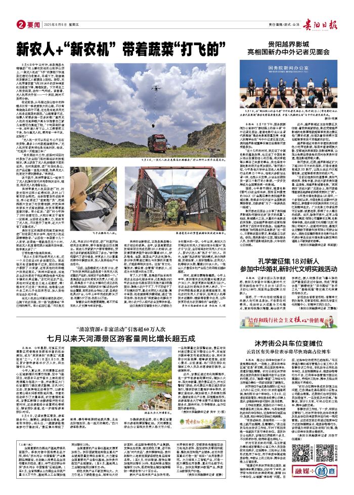 8月4日中午12时许,在息烽县永靖镇老厂村上寨村民组的山郎坪山顶上,一架无人机在“飞手”的操控下快速到达莲花白收割点,吊绳下方,刚装满的货筐被工人敏捷挂上挂钩。旋即,无人机带着货筐飞向300米