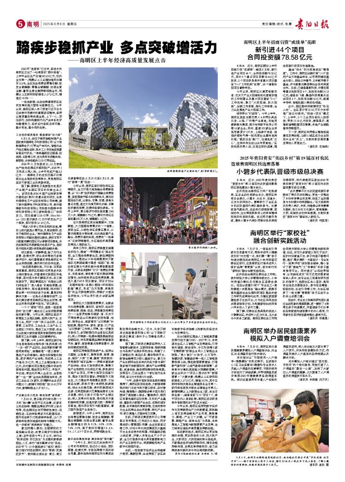 2025年“进度条”已过半,奋进中的南明区交出了一份亮眼的“期中答卷”:上半年全区生产总值545.29亿元,位列全市第一;规模以上工业增加值同比增长12.2%;全区社会消费品零售总额、批发业销