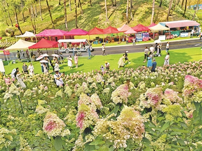 本报讯 8月11日,贵安新区贵州梅园的绣球园游人如织,不同口音的赞叹声在松林间回荡。这片由蓝紫粉白交织而成的花田,正以独有的“花漾”清凉,迎接来自全国各地的避暑游客。