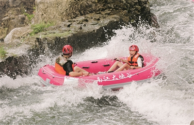 图为8月10日,游客在开阳县南江大峡谷景区漂流。 新华/传真