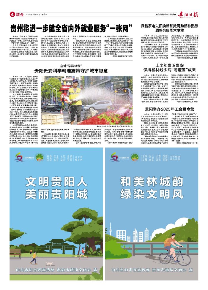 本报讯 8月13日,记者从市综合行政执法局下属的市城市绿化服务中心获悉,进入夏季以来,贵阳贵安在提升城市绿化上,采取“科学养护、精准施策”的原则,统筹推进抗旱防涝、病虫害防治等工作,全方位筑