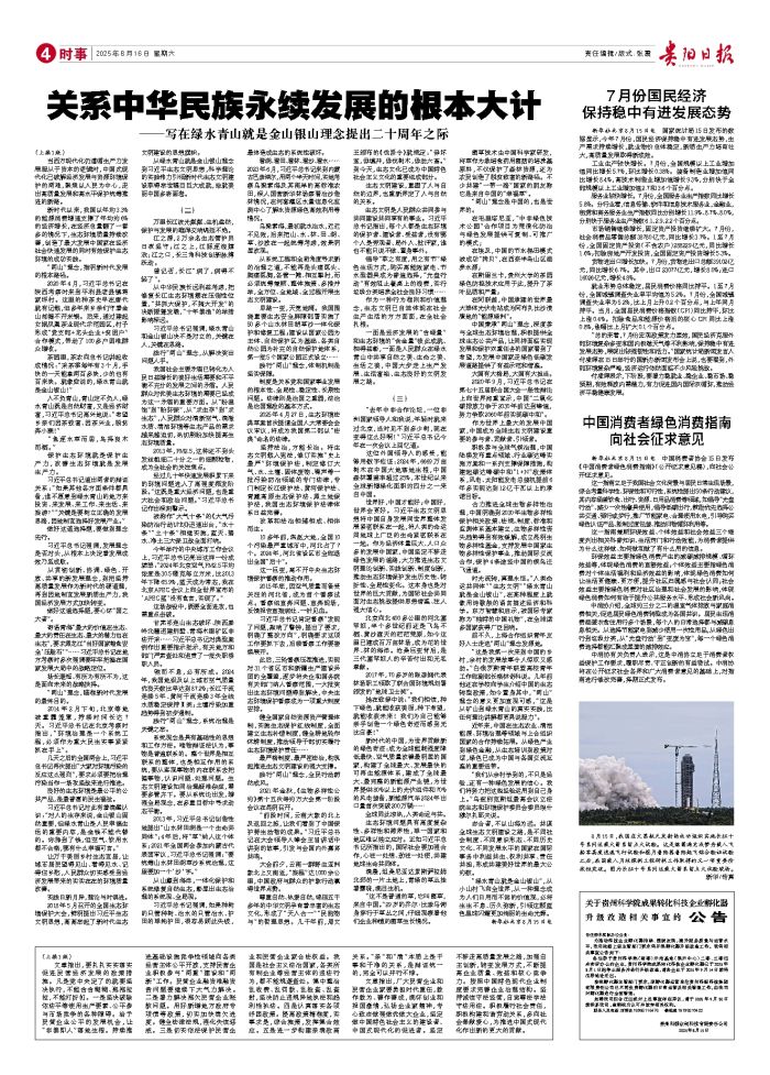 浙江省安吉县余村,镌刻着“绿水青山就是金山银山”的石碑矗立在流水之畔、青翠之间。 2005年8月15日,时任浙江省委书记习近平同志在这个小山村调研时说:“我们过去讲既要绿水青山,又要金山