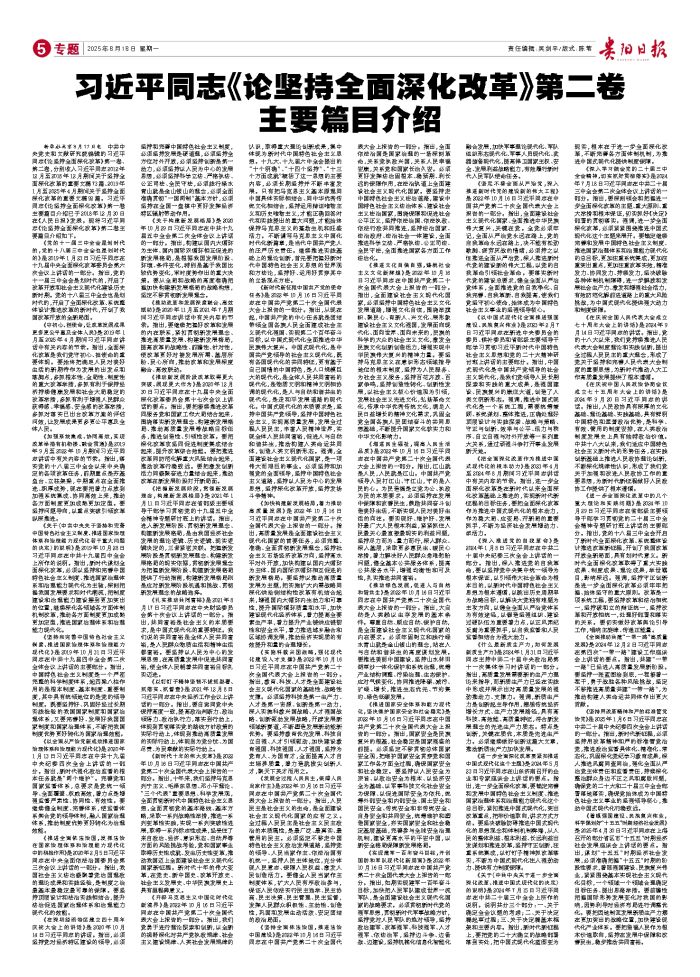 习近平同志《论坚持全面深化改革》第二卷 主要篇目介绍
