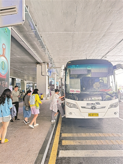 旅客在贵阳龙洞堡国际机场乘坐“机场便民快巴”专线。