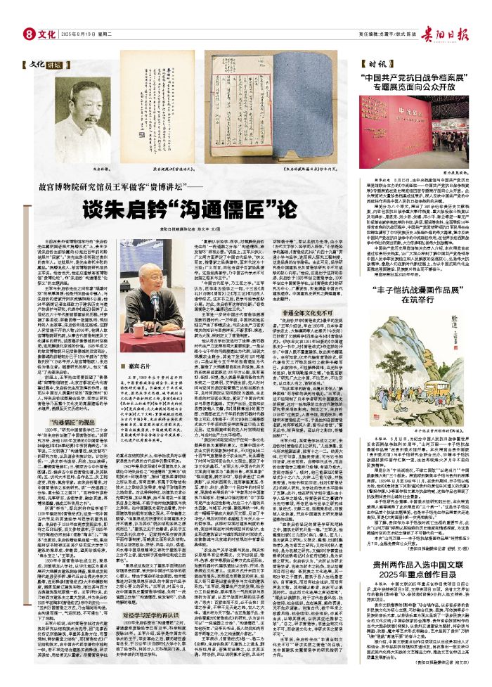 本报讯 8月12日,为纪念中国人民抗日战争暨世界反法西斯战争胜利80周年,“山河万里——丰子恺抗战漫画作品展”在贵州美术馆开幕。本次展览由贵州画院(贵州美术馆)与丰子恺研究会联合主办,50幅