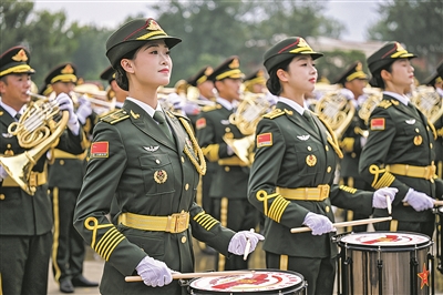 中国人民解放军联合军乐团在进行训练(8月12日摄)。
