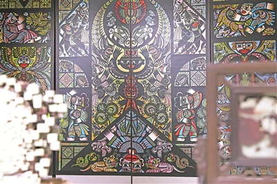 布展在馆内精品展示墙上的剪纸作品《天地灵 万物生》,是中国工美行业艺术大师王少丰以贵州少数民族文化为内核,融合写实、抽象与套色技法,创作形成粗犷而富有张力的个性化风格作品。这位曾获中国民间文艺山花奖、中国剪纸艺术节金奖的艺术家,用剪刀在纸上勾勒出民族文化的生命力,其作品多次在国内外展览中引发关注。