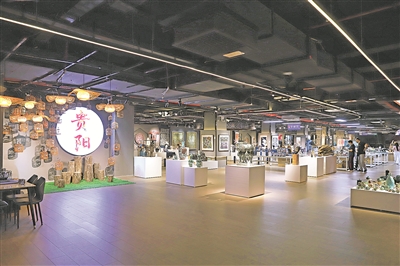 展厅外,是日均客流量达6.7万人次的网红商业街区——青云市集。展厅内,不仅汇集了一批传承贵州非遗的工艺美术精品,还展示了2000件贵州特色工艺品。
