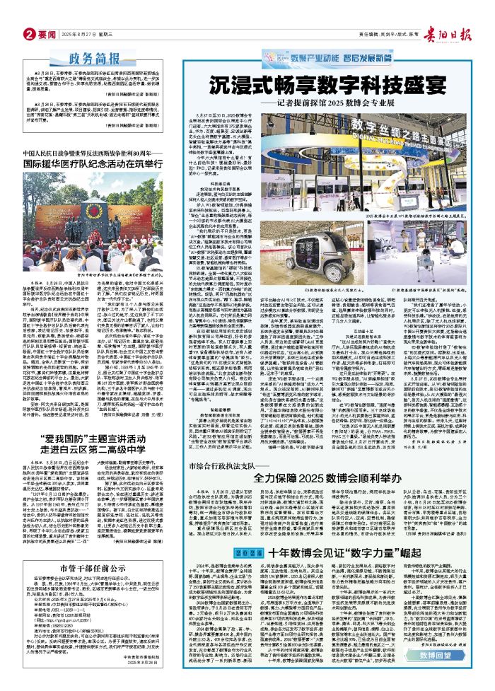 本报讯 8月26日,记者从市综合行政执法支队获悉,为确保2025数博会期间市容环境整洁、秩序井然,按照市综合行政执法局部署和筹划,统一调配全市综合行政执法力量,重点加强市容环境与秩序管理,持