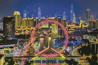 2025年8月25日晚拍摄的天津海河夜景(无人机照片)。新华/传真