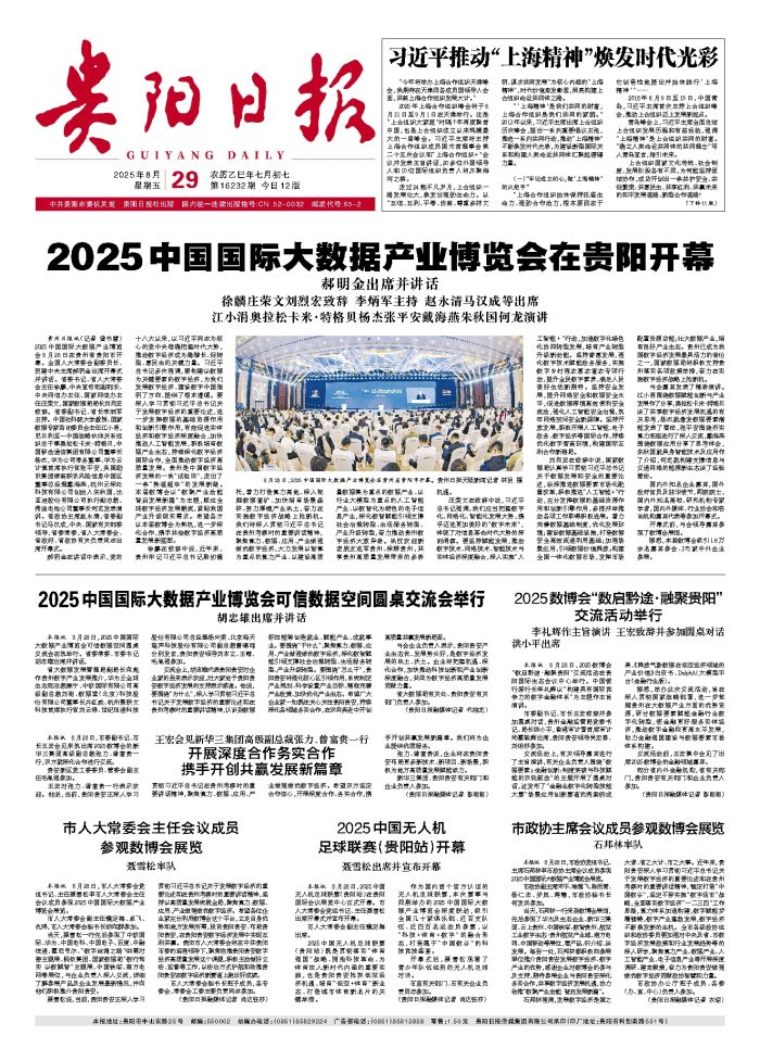 徐麟庄荣文刘烈宏致辞 李炳军主持 赵永清马汉成等出席 江小涓奥拉松卡米·特格贝杨杰张平安戴海燕朱秋国何龙演讲 贵州日报讯(记者 曾书慧) 2025中国国际大数据产业博览会8月28日