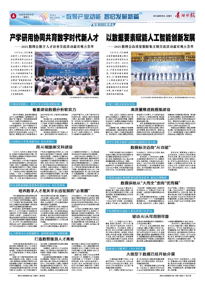 8月28日,2025数博会高质量数据集主题交流活动在贵阳国际生态会议中心举行。本次交流活动由国家数据局主办,中国信息通信研究院、中国移动通信集团承办,以“数据要素赋能人工智能创新发展”为主题,