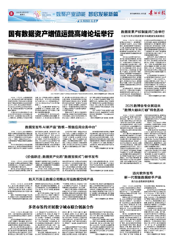 本报讯 8月28日,由国家数据局主办,贵州省社会科学院与贵州数据宝网络科技有限公司联合承办的国有数据资产增值运营高峰论坛在贵阳国际会议中心举行,来自全国各科研院所、行业协会以及领军企业的权威