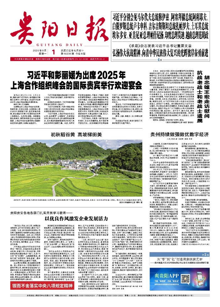 初秋时节,花溪区高坡乡梯田的水稻陆续进入成熟阶段,金黄的稻穗压弯了稻秆,在微风中摇曳生姿,呈现出一派丰收在即的喜人景象。图为8月26日拍摄的高坡乡梯田。 贵阳日报融媒体记者 覃伟 摄