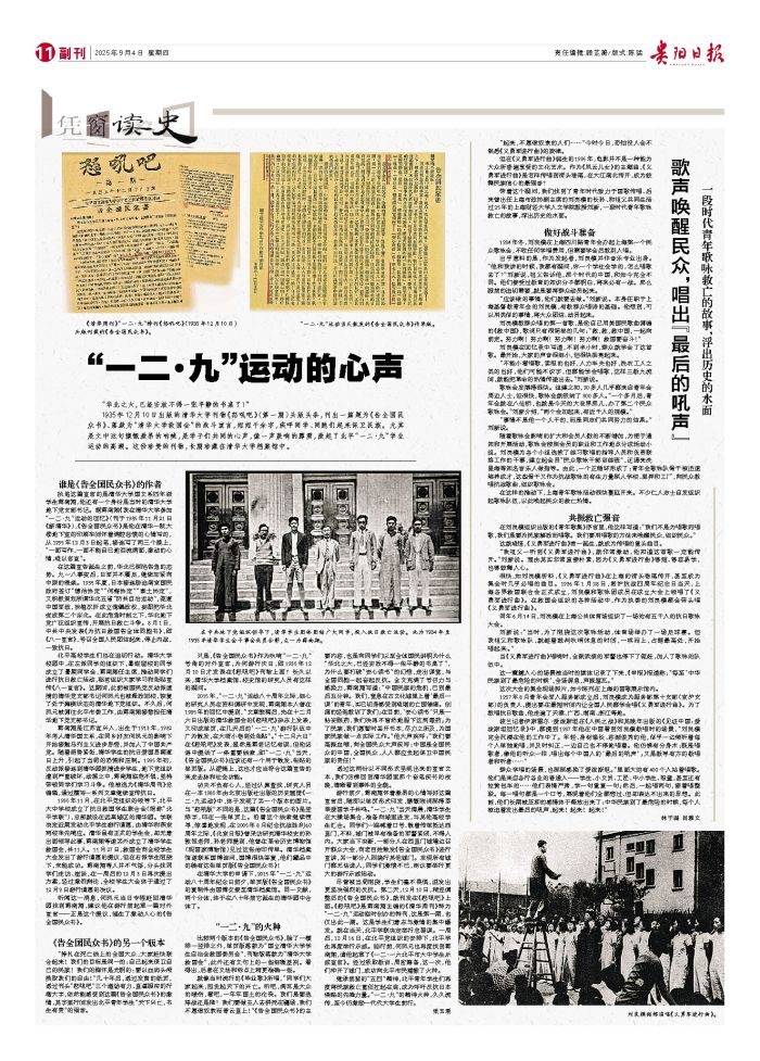 “华北之大,已经安放不得一张平静的书桌了!” 1935年12月10日出版的清华大学刊物《怒吼吧》(第一期)头版头条,刊出一篇题为《告全国民众书》、落款为“清华大学救国会”的战斗宣言,短短
