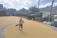 时下正是玉米丰收的季节,在修文县、息烽县、清镇市等地的乡村里,村民正抢抓农时收玉米,趁着晴好天气进行晾晒归仓。图为9月2日,修文县谷堡镇乌栗村村民在院子里晾晒玉米。 贵阳日报融媒体记者