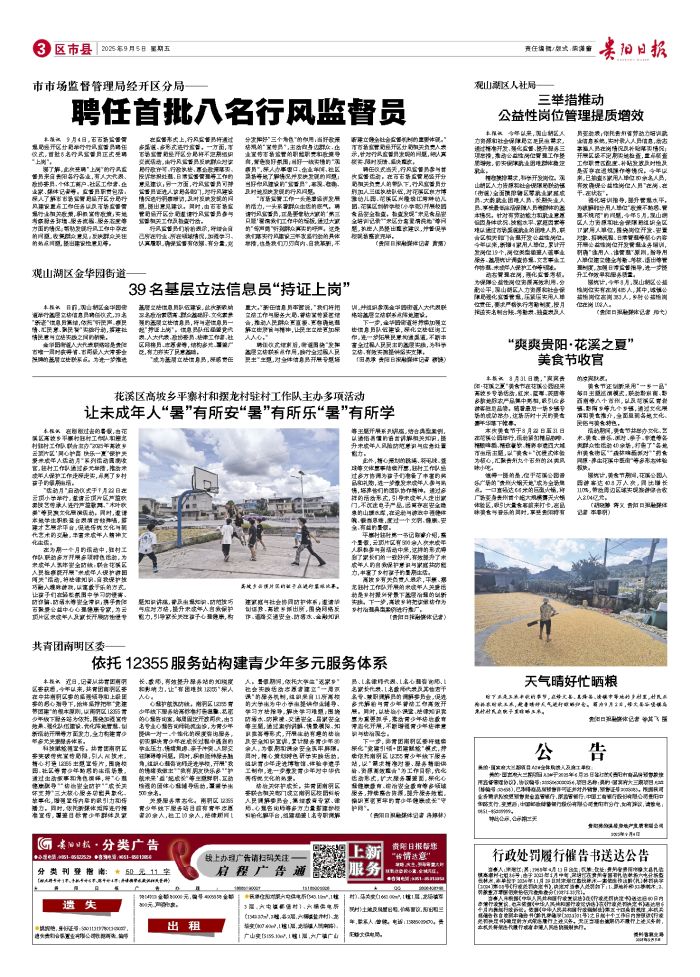 分类刊登指南: ★50元11字 (标点符号计1字、手机号计6字、固号计4字;并请携带或提供相关资料) ●办理电话:0851-85822529 ●咨询电话:0851-85813